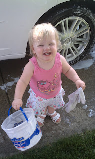 When we first got there she was very interested in all the people and music. But she got bored pretty quickly. Soon she was getting up and down out of her seat, saying hi to the people all around us, trying to pick up peanut shells from the ground, sticking her hand in my pop trying to get the ice, accidentally grabbing the arm of the lady next to us (whom she shared an armrest with). Thankfully it was a slow night at the ball park and we just moved up a row where we couldn't bother anyone. Every child under the age of two is considered a "lap child" and get in for free. I can't imagine taking her and making her sit on my lap the entire time. Oh my.